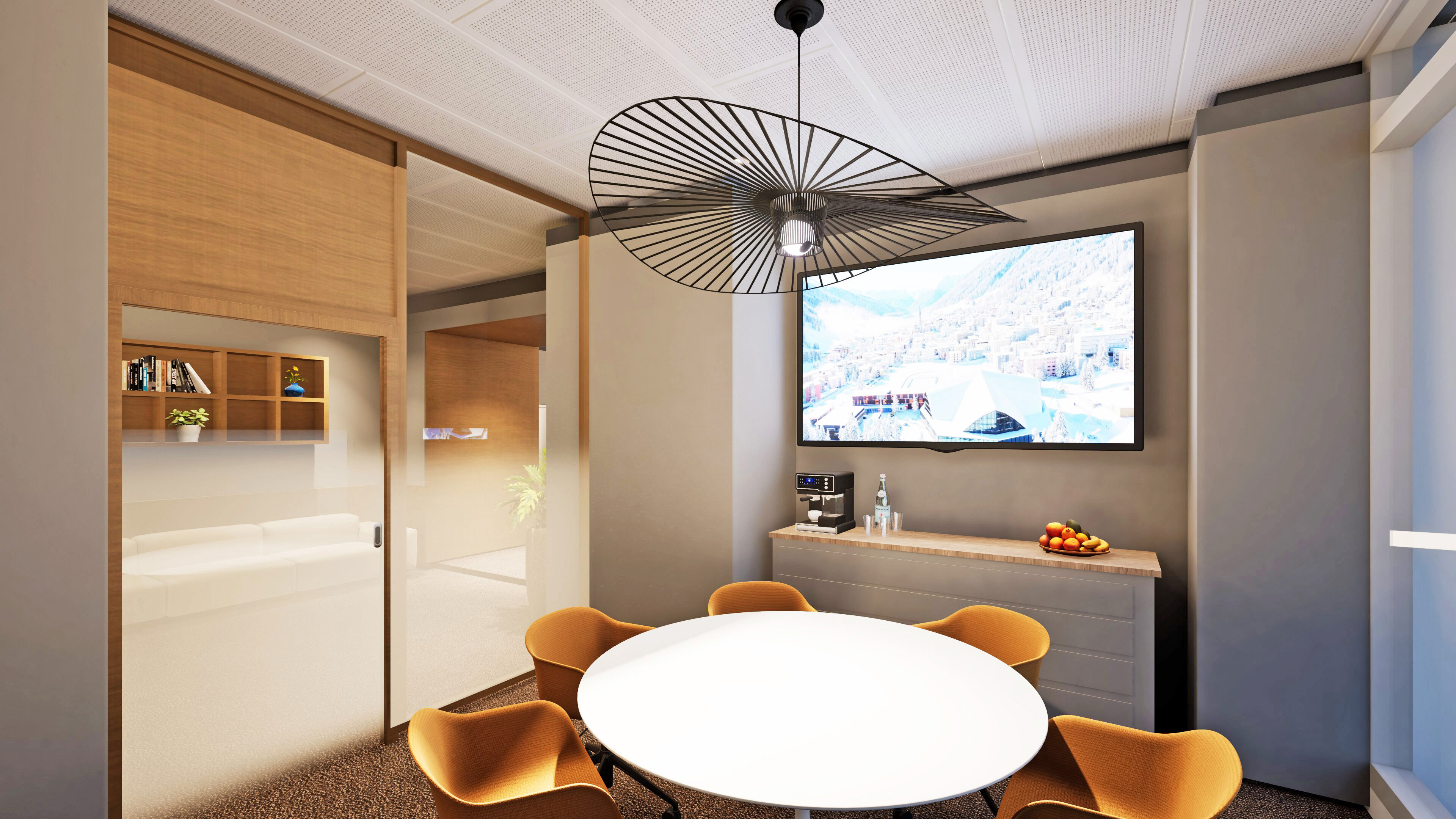 Für den Standort an der Promenade 63 in Davos wurde ein räumliches Konzept für die Davos Works GmbH erstellt. Es wurden ein szenographisches Raumkonzept sowie die entsprechenden Pläne und Projektvisualisierungen entwickelt.