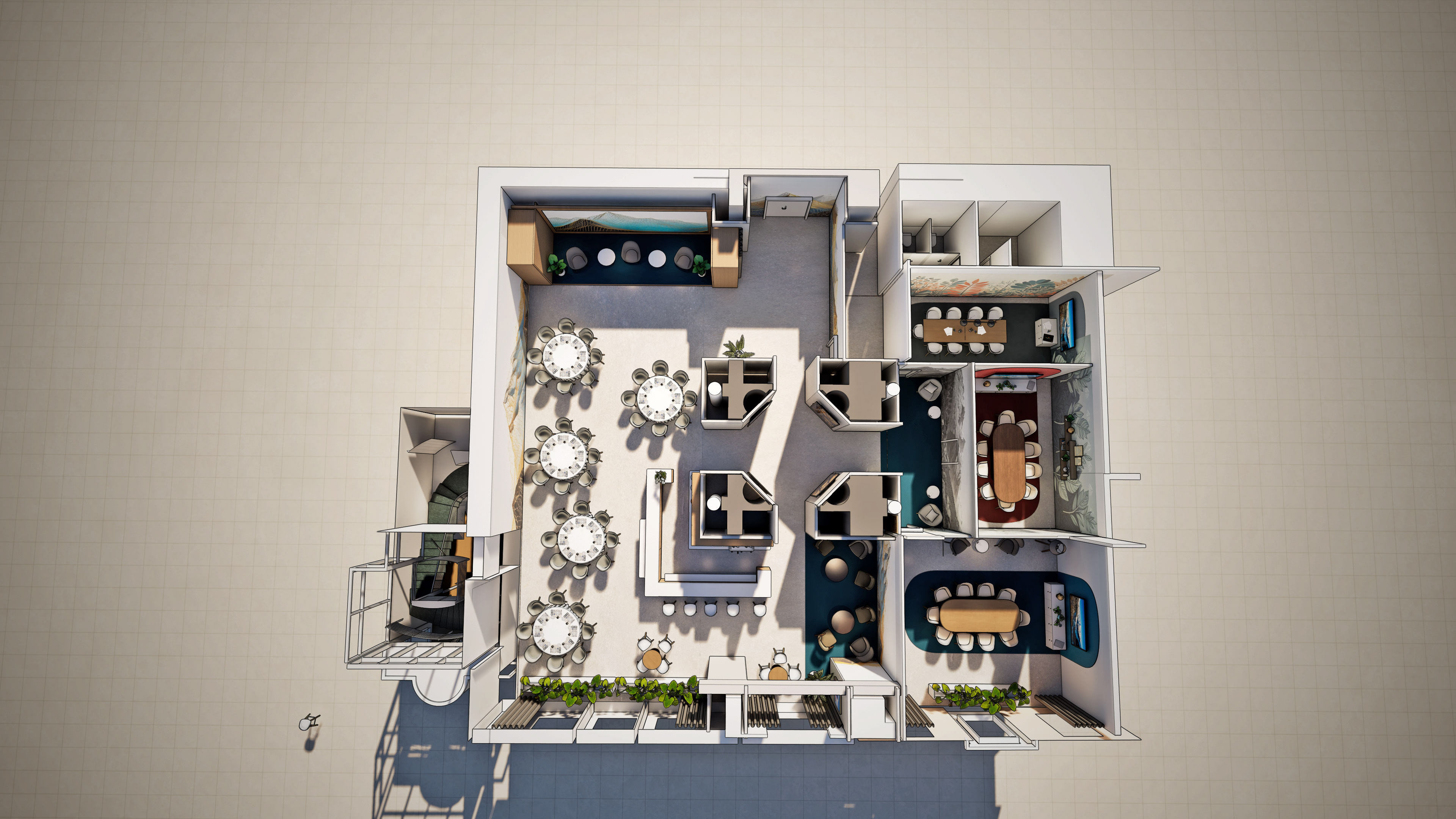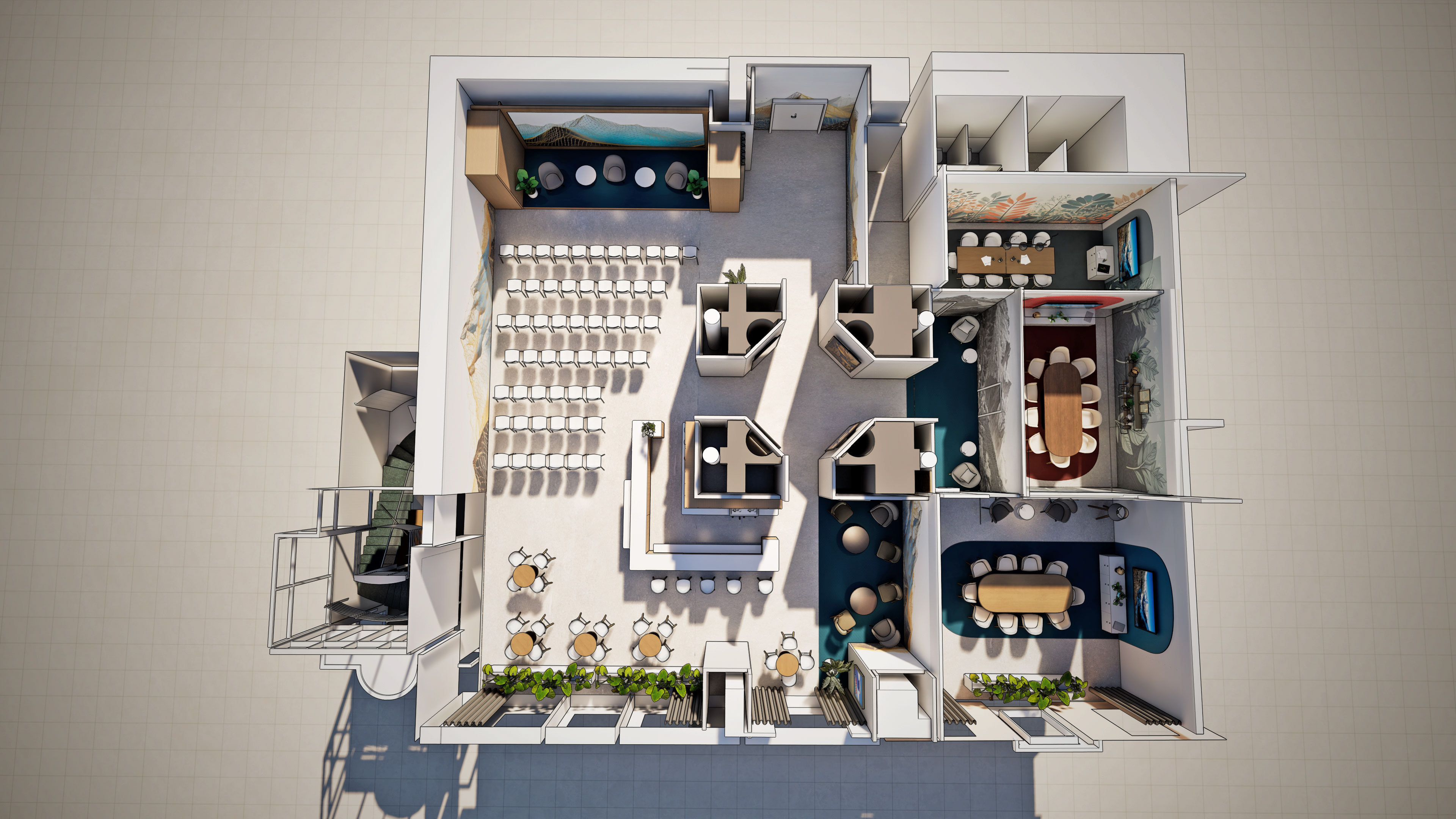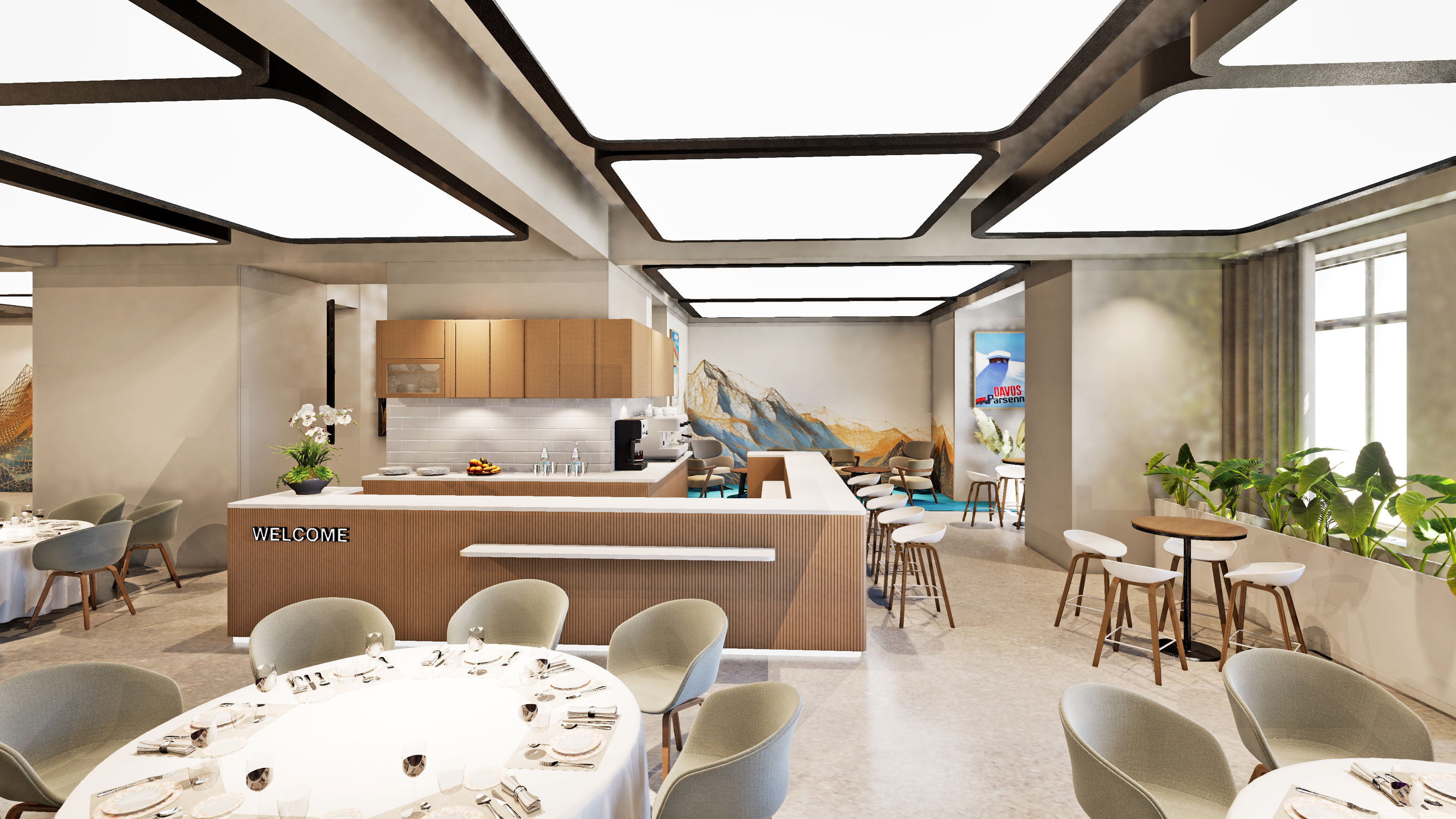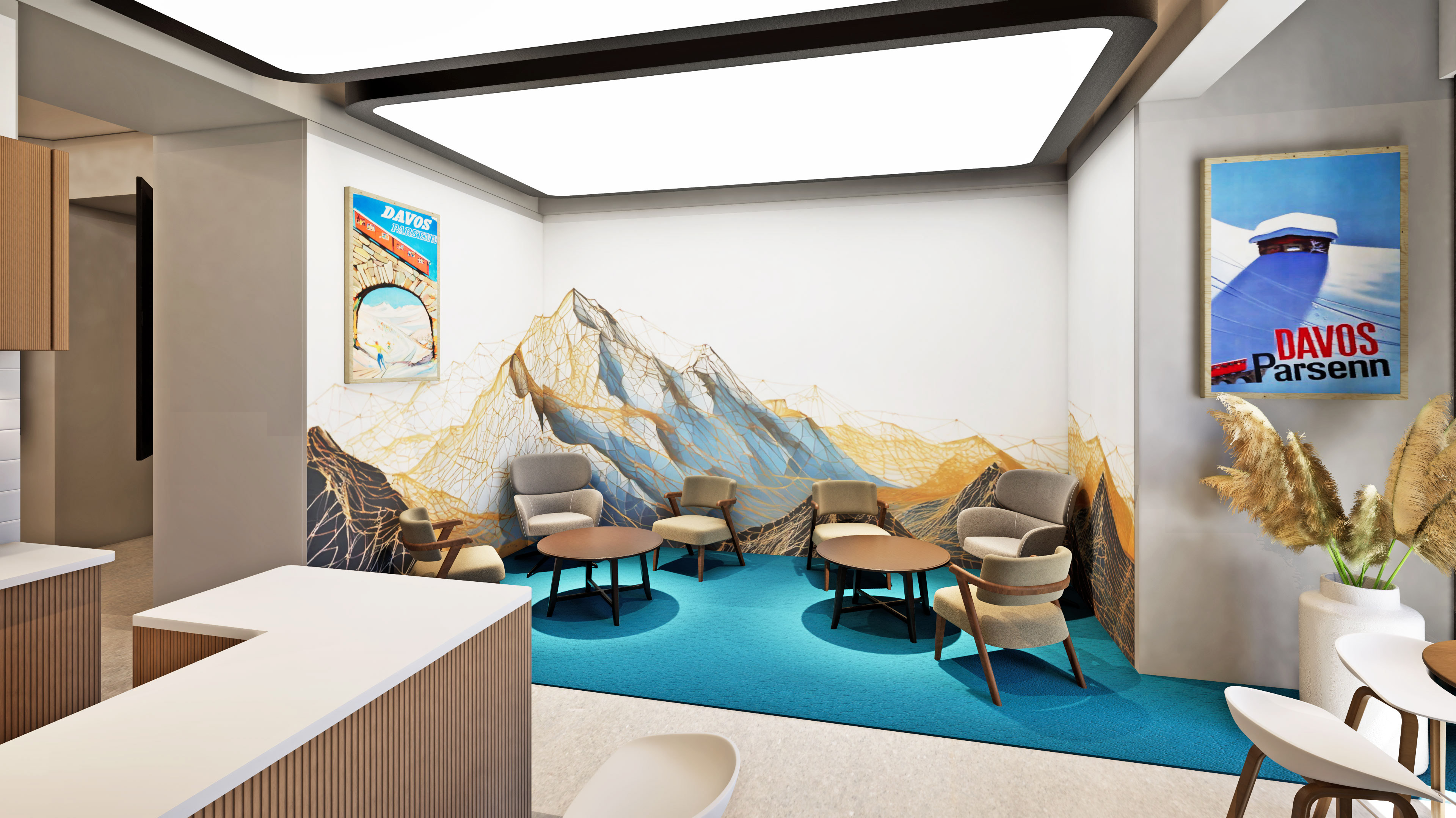 Für den Standort an der Promenade 58 in Davos wurde ein räumliches Konzept für die Davos Works GmbH erstellt. Es wurden ein szenographisches Raumkonzept sowie die entsprechenden Pläne und Projektvisualisierungen entwickelt.